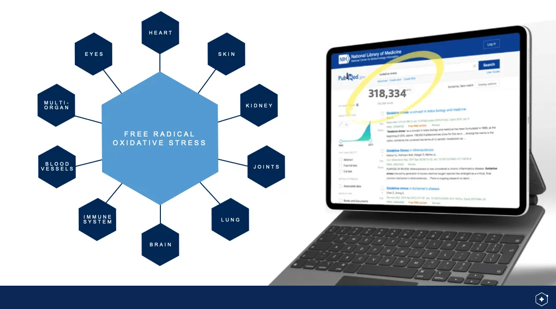 Oxidative Stress is directly linked to aging and hundreds of diseases. We have oxidative stress from the food we eat, the toxins, chemicals, pollution, poor sleep, too little or too much exercise, high stress lifestyle and so much more.